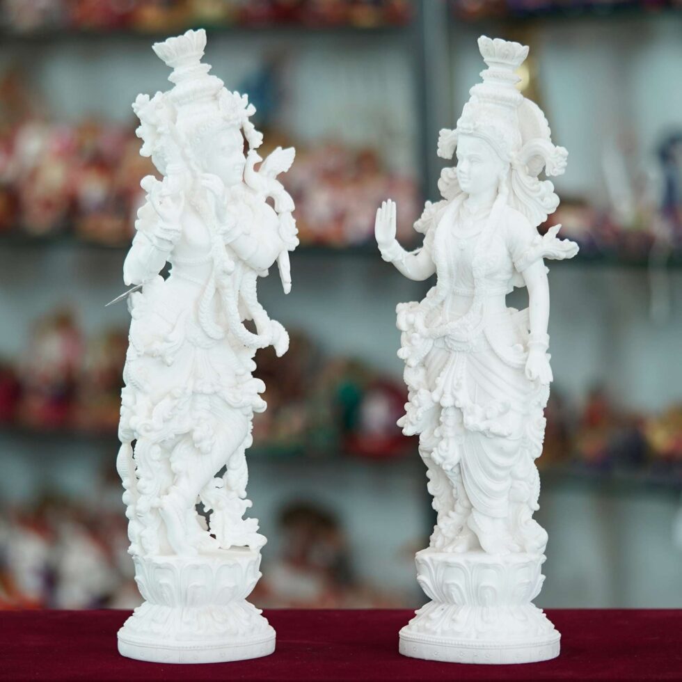 Marble Handmade Radha Krishna Ji Idol For Home D?cor Handcrafted Showpiece For Table D?cor(14 INCHES HEIGHT)